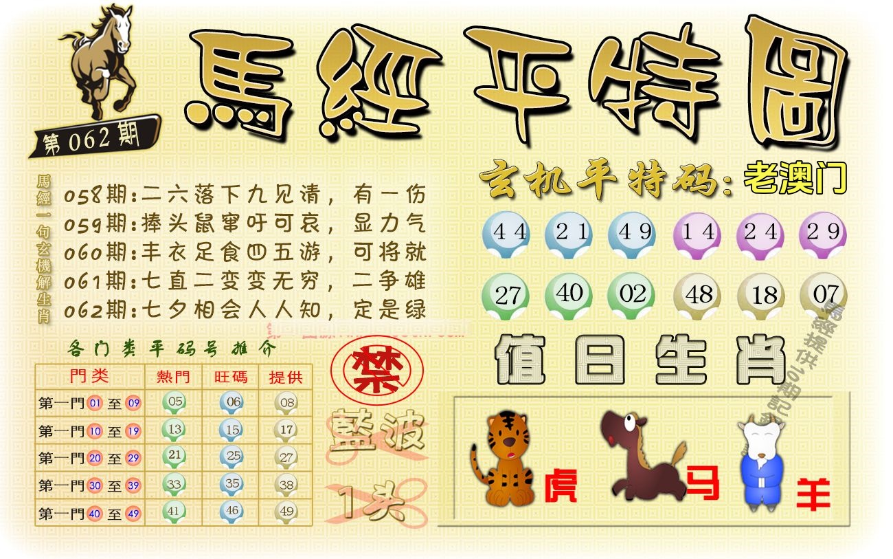 | 060期:必中㈠肖: 马 |