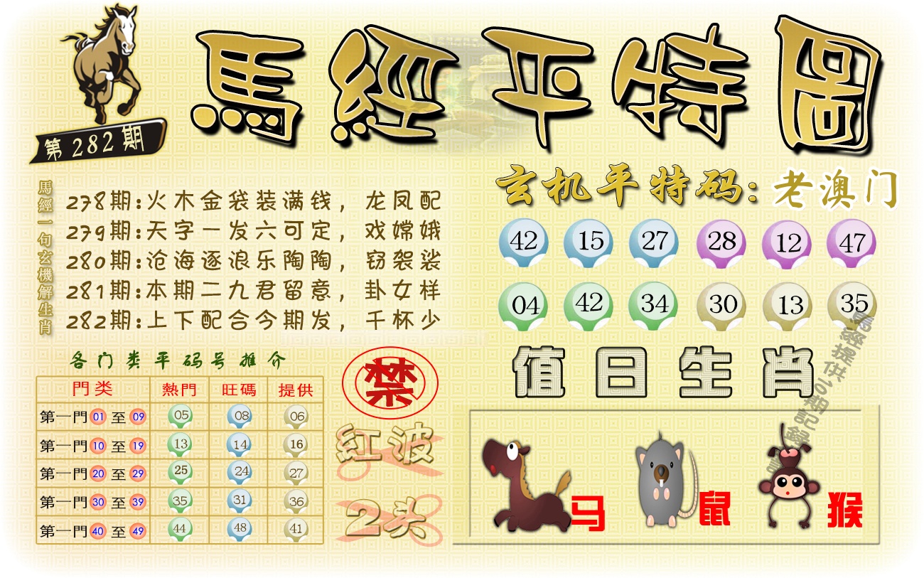 282期:必中七肖: 狗猪蛇虎羊牛马 |